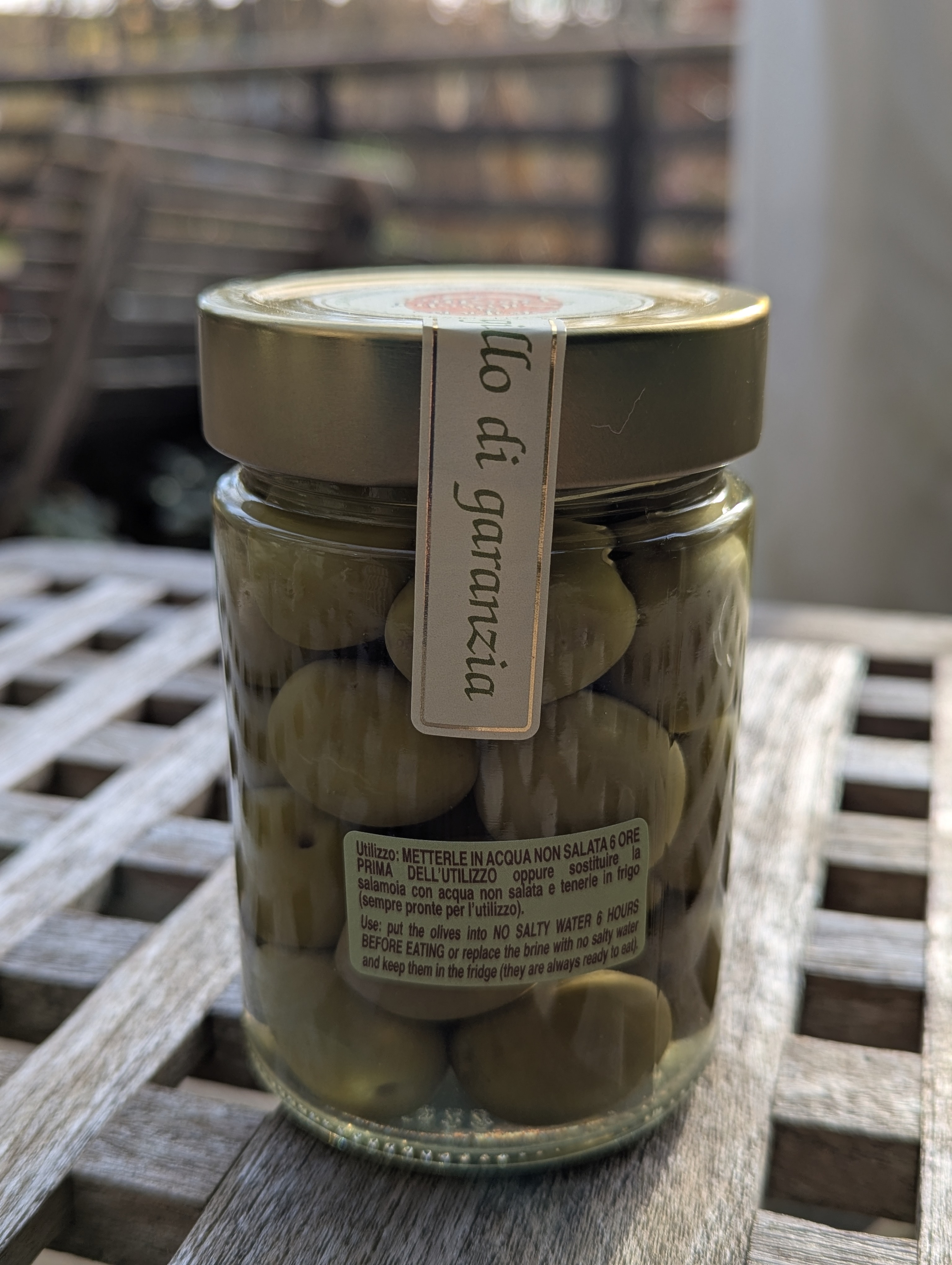Eine regionale Spezialität, die es nicht jedes Jahr gibt! Die Olivensorte Ascolana Tenera kommt nur in der Region der Provinzhauptstadt Ascoli Piceno vor. Es handelt sich um eine besonders große Olive, die grün geerntet wird, um als Tafelolive in Salzlake eingelegt zu werden. Da sie so fleischig ist, schmeckt sie leider auch der Olivenfliege, diesem lästigen Schädling und kann nicht in jedem Herbst geerntet werden. Unsere “Oliva Ascolana del Piceno DOP in salamoia” produziert die Ölmühle Rosina Silvestri. Es sind nur grüne Oliven, Wasser und Salz im Glas.